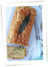 Laisser refroidir un peu avant de démouler sur une grille. Vous pouvez agrémenter la dégustation de ce cake d'une salade de jeunes pousses ou d'une onctueuse sauce yaourt, citron, sel et herbes fraîches (ciboulette par exemple).